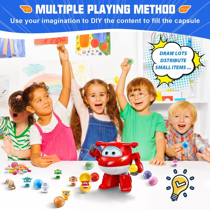 - Colorful Surprises: Each vending machine toy includes 7 vibrant balls that dispense adorable role dolls, sparking children's imagination and encouraging creative role play with the beloved Super Wings team members