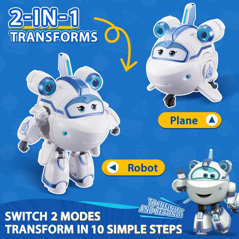 - Collect them all - Collect the entire line of Super Wings team members (sold separately)! Choose from Jett, Dizzy, Donnie, Paul, Sunny, Golden Boy and many more, all can transform into a completely unique vehicle or helicopter from the robot mode.