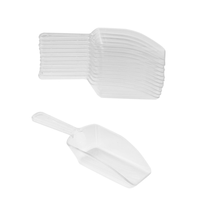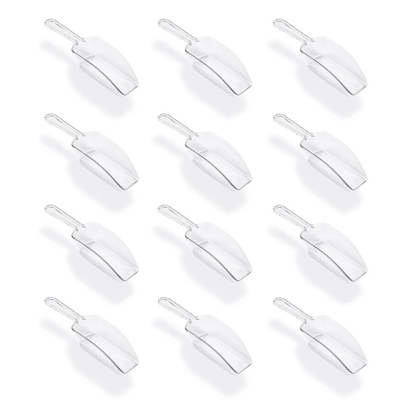 - Comes in a package of 12 mini acrylic scoops. Each scoop measures at 5.5" inches x 1.75" inches. Each scoop holds up to 2oz.