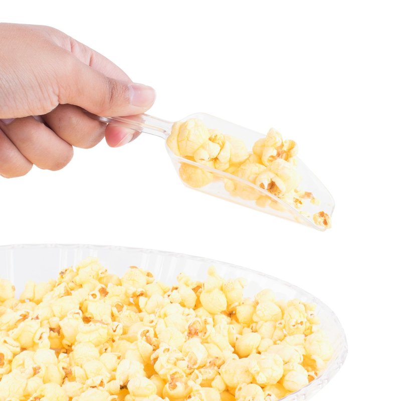 - Let your guests scoop out their favorite candies and treats with these attractive clear plastic candy scoops. An essential for a food stand, a diner, as restaurant supplies and even a school or carnival concession stand. Clear plastic containers for all your food service and sampling needs.