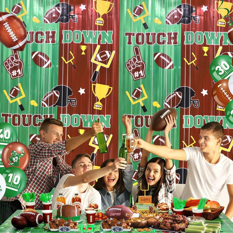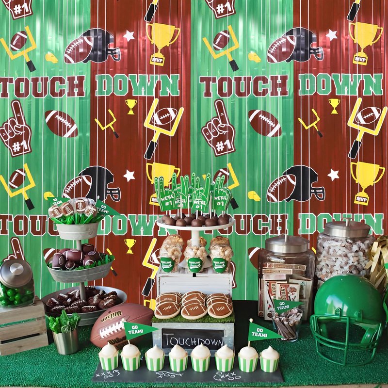 - 🏈【SUITABLE FOR ALL FOOTBALL THEME EVENTS】-These beautiful fringe backdrop curtain makes perfect decorations for football party, sports festival, game day, Super Bowl Sunday night party and any other sport-themed parties and celebration events, creating a stunning background and photo booth for all special occasions.