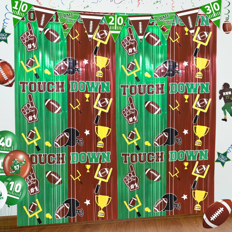 - 🏈【FOOTBALL PARTY DECORATIONS】- The superbowl party decorations includes 2 pack foil fringe curtains tinsel backdrops. Printed with classic football theme patterns and colors, these vibrant and beautiful foil fringe curtains will create an impressive game atmosphere for your football party and Super Bowl Sunday Night.