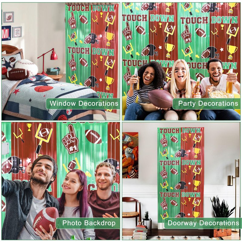 - 🏈【EASY TO APPLY】- Each fringe curtain is individually packaged for convenient use, simply tear off the double sided adhesive tape of the back, stick to your desired location, such as walls, windows, doorway, table, classroom, stage background, living room etc. Decorate your American football party with these lovely football themed tinsel backdrop curtains, it will make your party a big hit and brings you compliments from your guests.