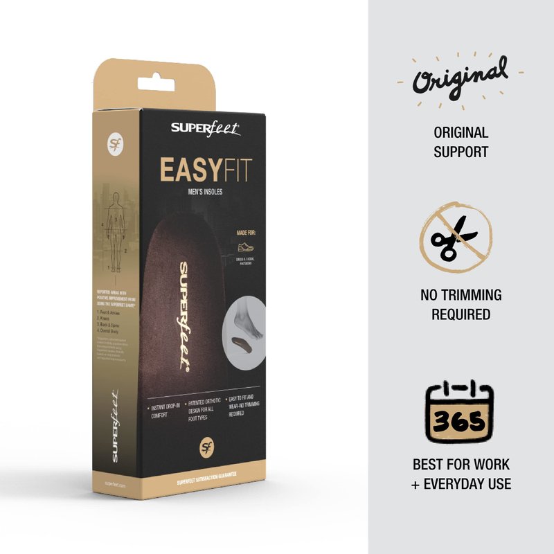 - Formerly Known as Superfeet EASYFIT Men's: Casual Men’s Easyfit insoles are the same great arch support insoles you love, now with a new name