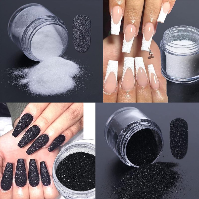 - YOU WILL RECEIVE :2 Bottles Black White dip powder set fine glitter for nails sugar effect,this is perfectly designed for sugar and french tip nail art effect that gives nails a special look to help you stand out and impress like shiny nail powder.