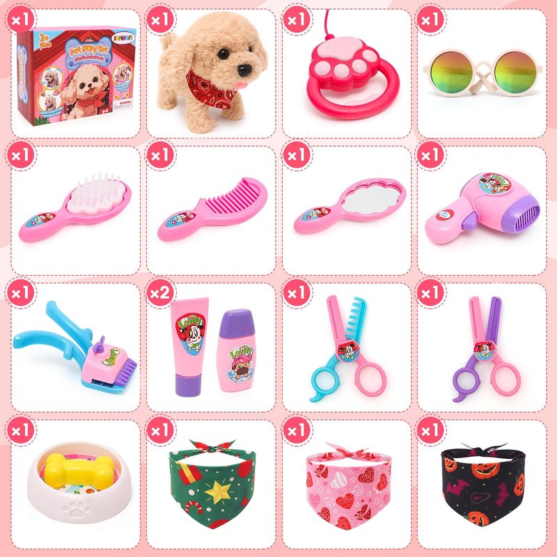 - Comprehensive Grooming Tools - Provide a full grooming experience with shower gel, comb, scissors, and mirror. Kids can engage in pretend bathing and grooming sessions, enhancing their caregiving skills. Children will get a lot of enjoyment in the interaction with the cuddly puppy and accessories toys.