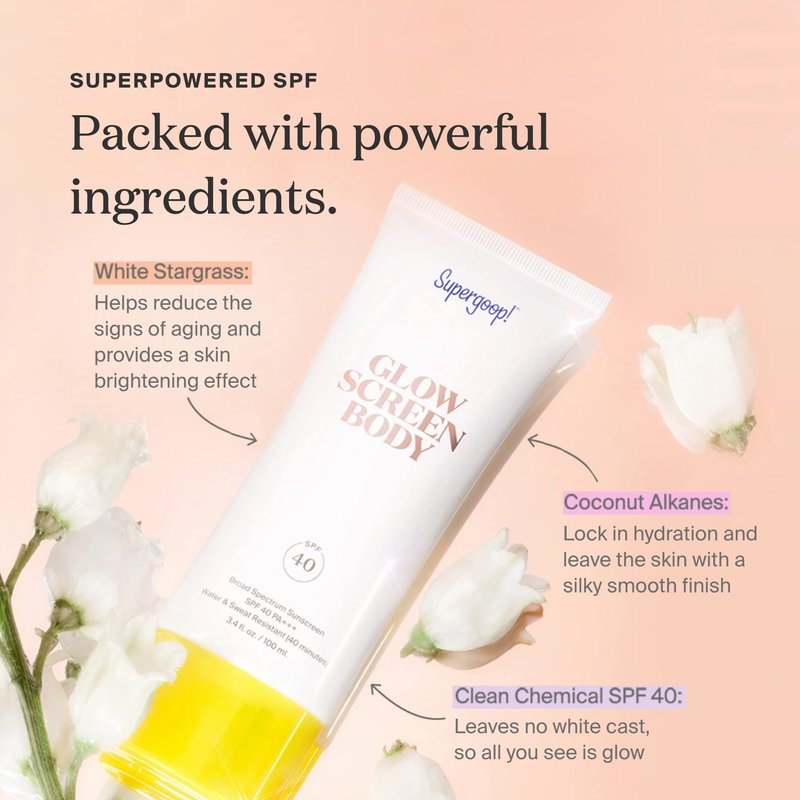Supergoop! Glowscreen Body SPF 40 PA+++, 3.4 fl oz - Pack of 2 - Body Lotion + Broad Spectrum Sunscreen with Subtle Shimmer - Adds Instant Glow & Hydration - Contains White Stargrass & Coconut Alkanes