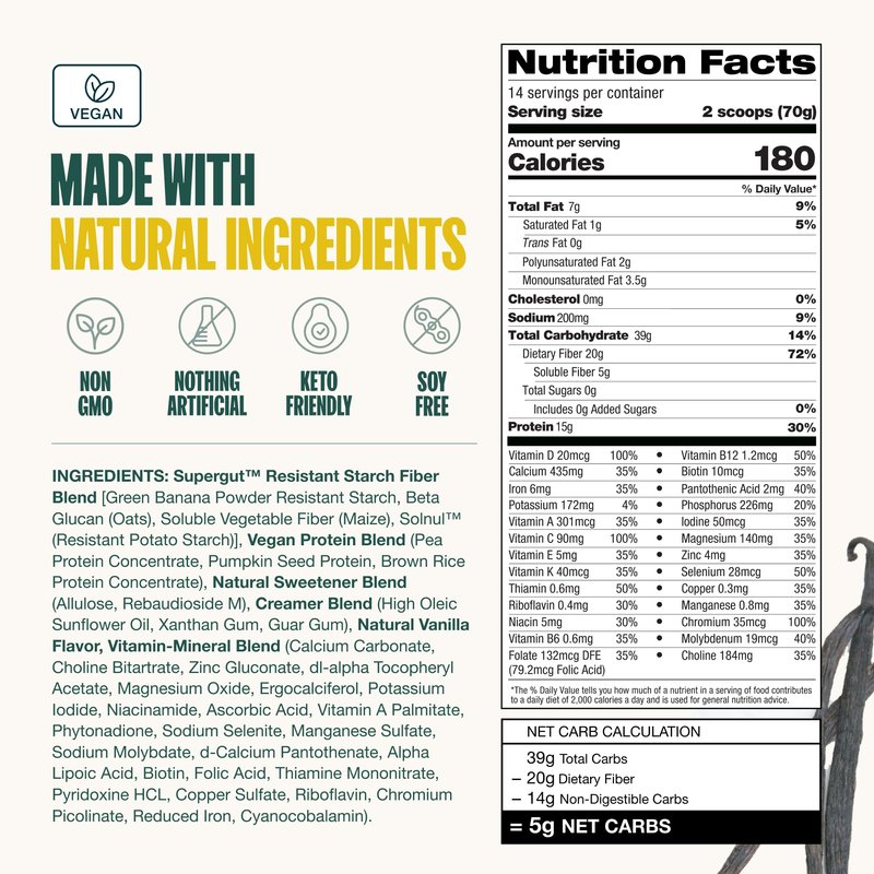 - PACKED WITH NUTRITION: Shake up your health routine with 20g fiber, 15g protein, 6g net carbs, and 0g sugar in every serving. The most gut-healthy meal replacement out there.