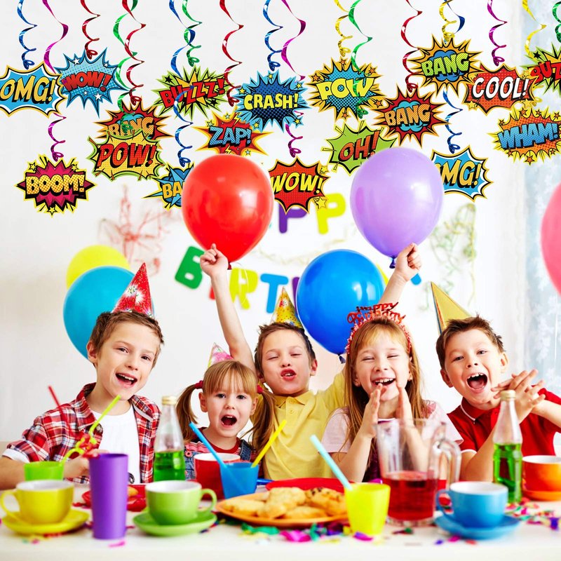 - HERO PARTY SUPPLIES -- If you are planning to hold a superhero birthday party for your kids, the bright color foil Swirls Decorations and the popular elements in adults and kids, will create a huge hit and great fun to your party.