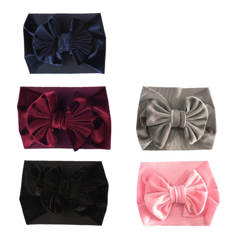 - Design: Fine handmade workmanship. Fashionable and pretty velvet bow hair bands. They will make children adorable and eye-catching. Soft and stretchy head bands don't squeeze babies' head