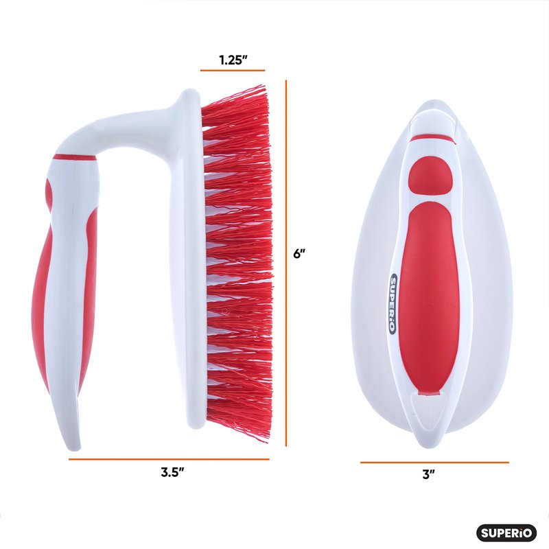Superio Grout Brush, Dish Brush, Shower Scrubber Cleaning Brush, Stiff Bristles, Comfort Grip Handle,Red Brush Cleaner for Kitchen, Bathroom, Shower, Sink, Toilet- Vegatable Brush, Carpet Scrubber