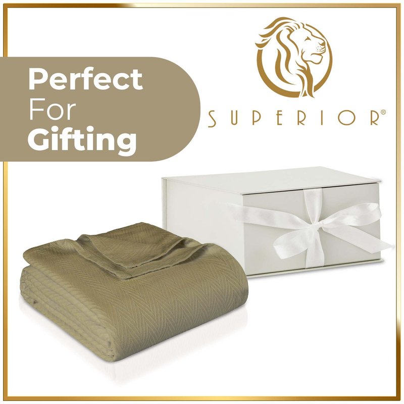 Superior 100% Cotton Blanket Oversized Throw, Woven Blanket for Couch, Bed, Bedding, Farmhouse, Home Essentials, Cute and Cozy Bohemian Blankets, Herringbone Weave, Throw, Sage