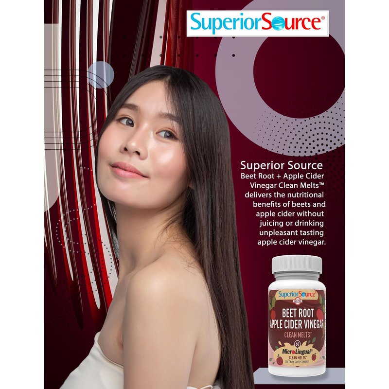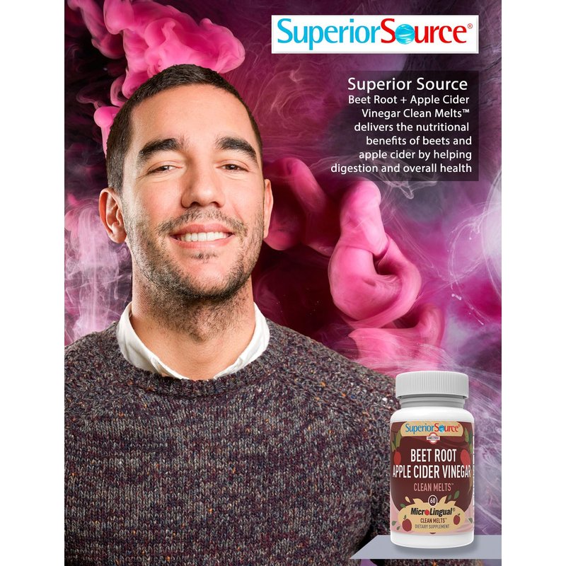 Superior Source Beet Root + Apple Cider Vinegar Clean Melts, 60 Instant Dissolving & Great Tasting Tablets, Nitric Oxide and Energy Booster, Immunity & Detox, Non-GMO