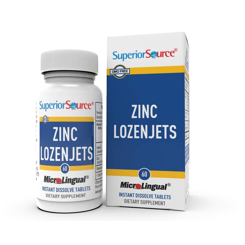 Superior Source Zinc Lozenjets, Zinc (5 mg), Vitamin C (15 mg), Quick Dissolve MicroLingual Tablets, 60 Ct, Supports Immune, Skin and Antioxidant Health. Non-GMO