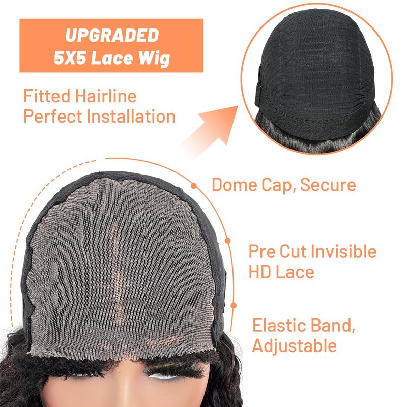 - ❤Ready To Go Glueless Bob Wig Lace: Glueless Bob Wigs Human Hair is Hand-Made with 5x5 HD Transparent Swiss Lace,Which Is Invisible and Breathable and Blends Perfectly and Allows You to Have A More Natural Baby Hair Around and Can Let You Do More Hairstyle.