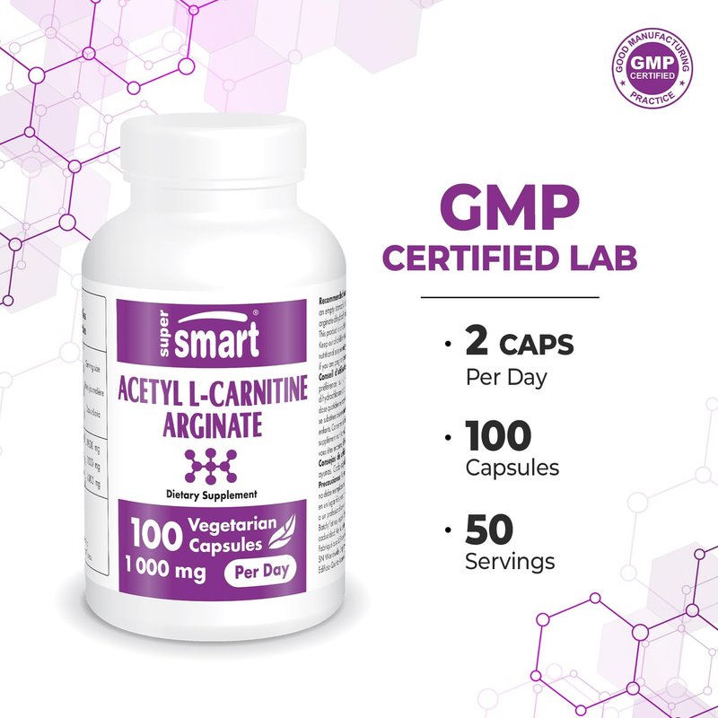 Supersmart - Acetyl L Carnitine Arginate 1000mg per Day (Advanced Form) - Pure Amino Acids Supplement | Non-GMO & Gluten Free - 120 Vegetarian Capsules