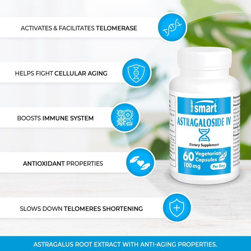 Supersmart - Astragaloside IV 98% 100 mg Per Day - Astragalus Root Extract - Antioxidant Supplement | Non-GMO & Gluten Free - 60 Vegetarian Capsules