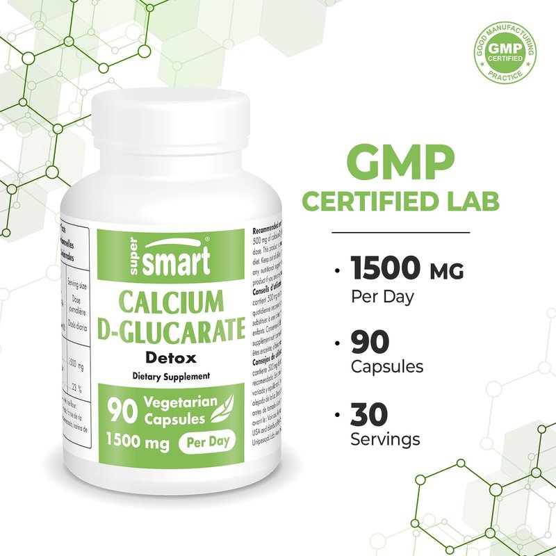 SuperSmart - Calcium D-Glucarate 1500mg per Day (High Strength) - Calcium Supplement | Non-GMO & Gluten Free - 90 Vegetarian Capsules
