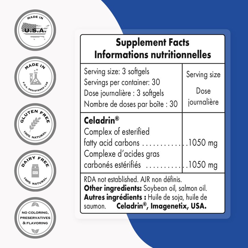 Supersmart - Celadrin 1050mg per Day (Patented) - Esterified Carbon Fatty Acids Supplement | Non-GMO & Gluten Free - 90 softgel Capsules