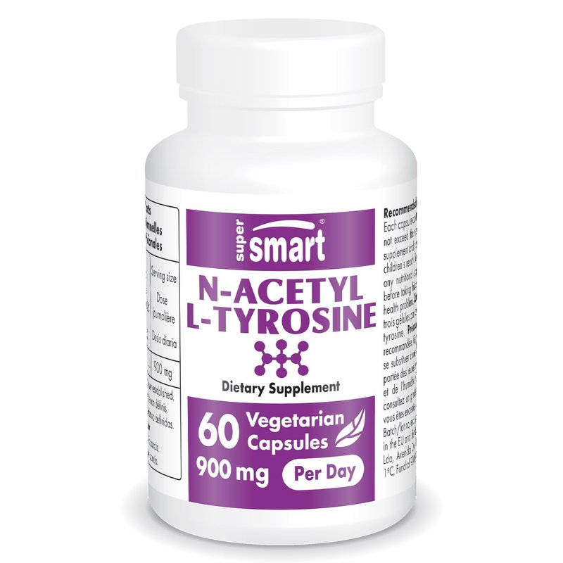 Supersmart - N-Acetyl L-Tyrosine Supplement 900mg per Day (High Strength) - NALT N-Acetyl L-Tyrosine - Nootropic Amino Acids | Non-GMO & Gluten Free - 60 Vegetarian Capsules