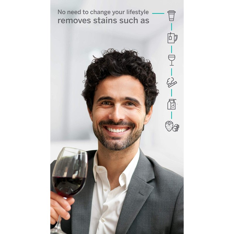 - Used twice a day to remove coffee, tea, tobacco, red wine, and food stains