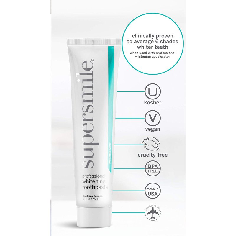 Supersmile Professional Whitening Toothpaste w/ Fluoride - Removes Stains & Whitens Teeth 6 Shades - Enamel Strengthening - No Sensitivity - Travel Size (Original Mint, 1.4 Oz)