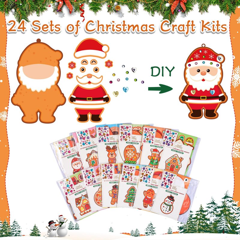 Supervitae 24 Sets Christmas Craft Kits DIY Christmas Tree Ornament Decorations Art Sets Santa Snowman Gingerbread Crafts Stickers for Holiday Xmas Home Classroom Activities Party Favors(Gingerbread)