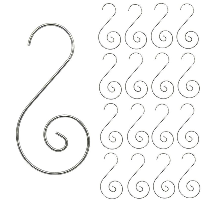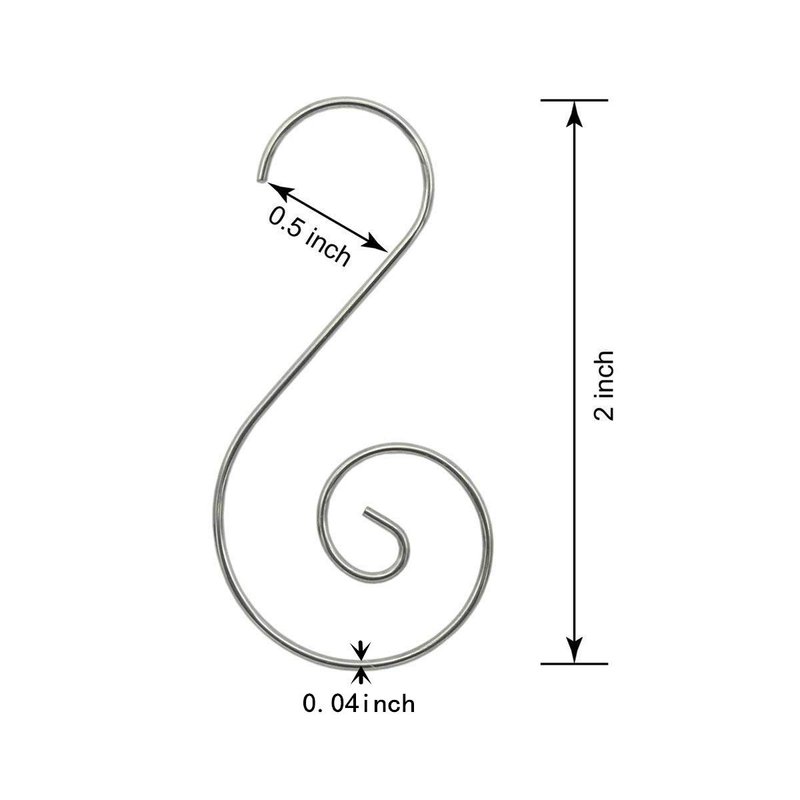 Pack of 160 approx 2" H decorative metal wire ornament hooks. Shiny silver finish with a decorative S-design. Will hold the shape of the ornaments when hanging.