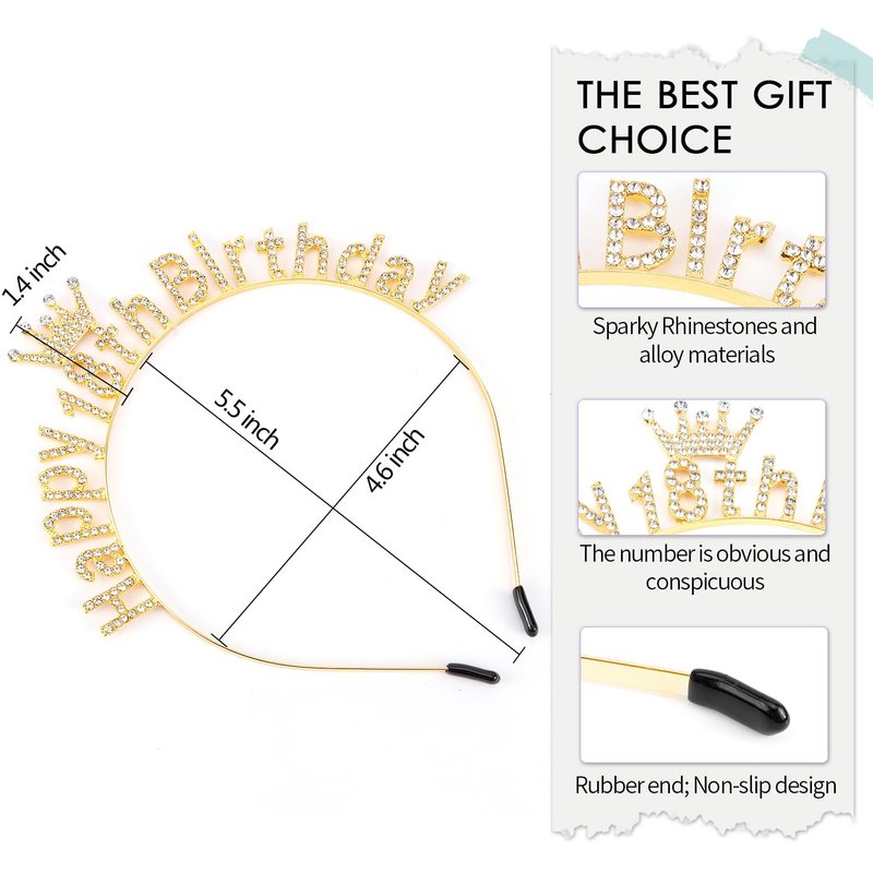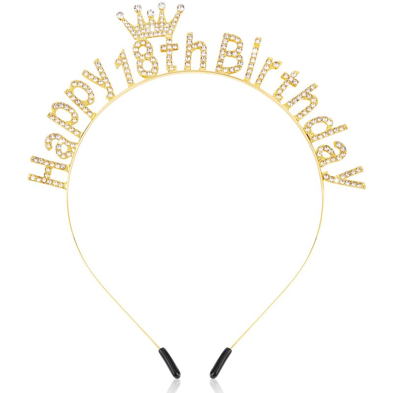 SuPoo 18th Birthday Decorations for Girls Gold Happy 18th Birthday Crown Headband 18 Year Old Birthday Gifts Birthday Tiara 18 Year Old Girl Party Decorations Accessories
