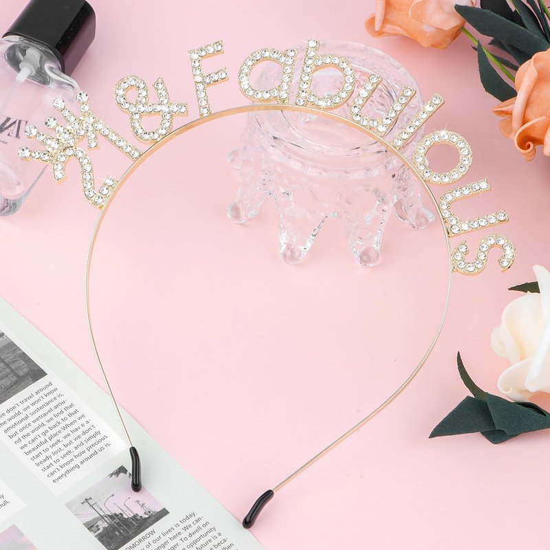 SuPoo 21st Birthday Decorations for Her 21st Birthday Crown Gold Diamond Birthday Headband 21st Birthday Gifts Party Decorations Happy 21 Birthday Girl Headband Tiara Hair Accessories