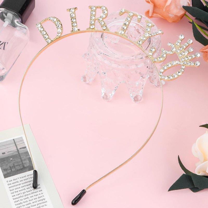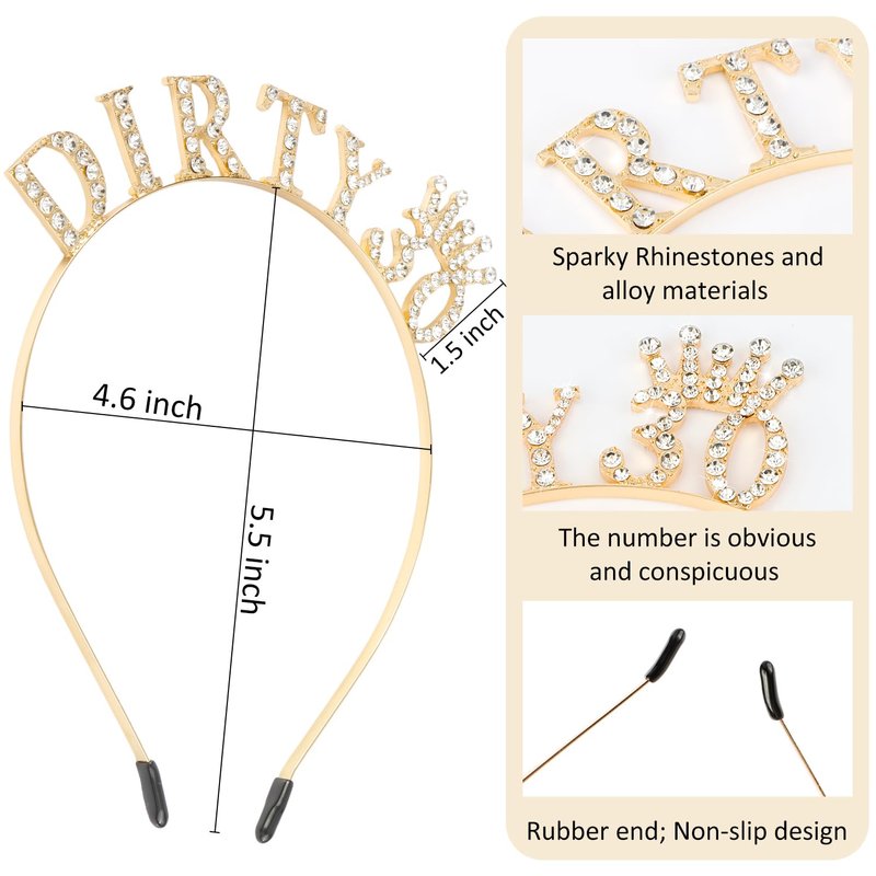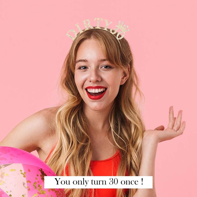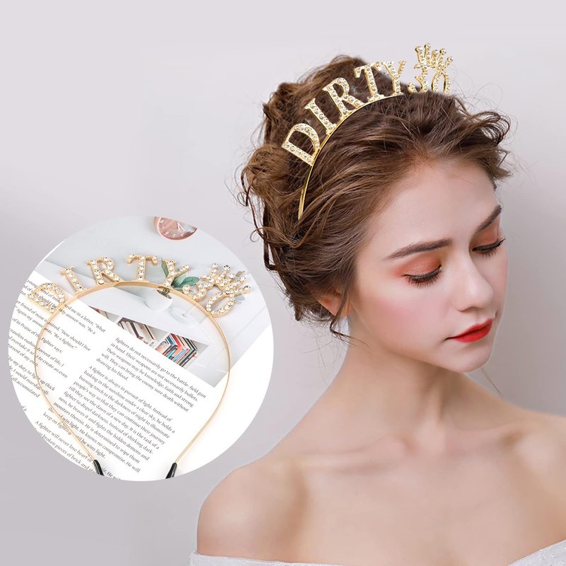 SuPoo 30th Birthday Decorations for Women Dirty 30 Birthday Crown Gold Diamond Birthday Headband 30th Birthday Gifts for Her Thirty Party Decorations Happy Birthday Girl Tiara Hair Accessories