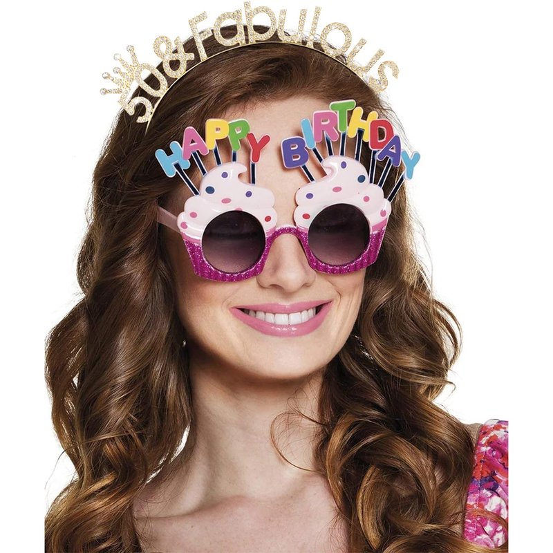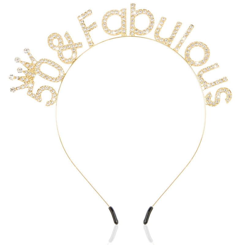 SuPoo 50th Birthday Decorations for Women 50th Birthday Crown Gold Diamond Birthday Headband 50th Birthday Gifts for Her 50 & Fabulous Party Decorations Happy Birthday Tiara Hair Accessories