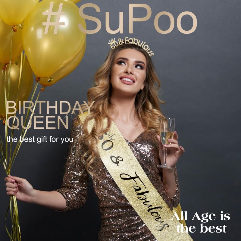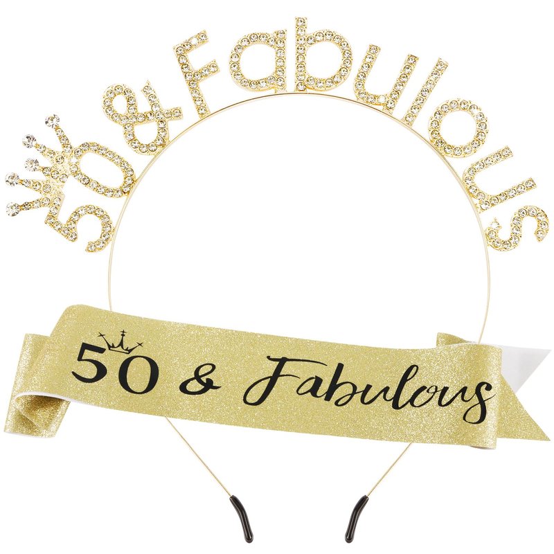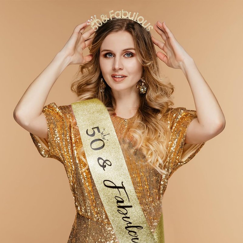 SuPoo 50th Birthday Sash and Crown Kit Gold 50 & Fabulous Birthday Headband Tiara 50th Birthday Decorations for Women 50th Birthday Gifts for Her 50 Year Old Happy Birthday Party Decorations