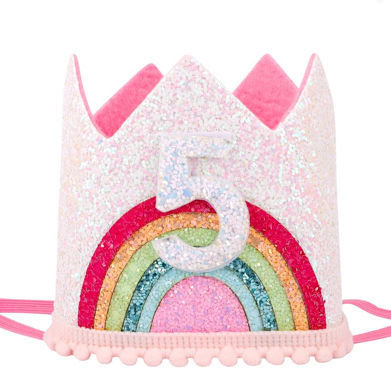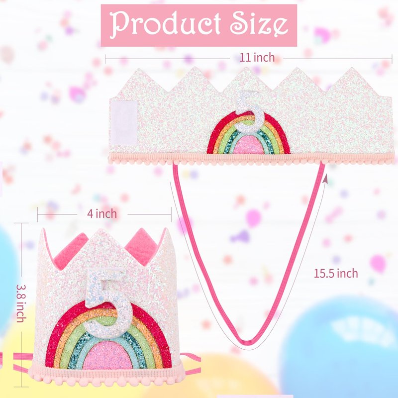 SuPoo 5th Birthday Hat Headband 5th Birthday Decorations for Girl Rainbow Birthday Crown for Girls Princess Tiara Elastic Hairbands 5 Year Old Happy Birthday Party Cap Decorations Accessories