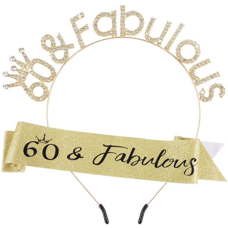 SuPoo 60th Birthday Sash and Crown Kit 60 and Fabulous Birthday Headband Tiara 60th Birthday Decorations for Women 60th Birthday Gifts for Her 60 Year Old Party Decorations