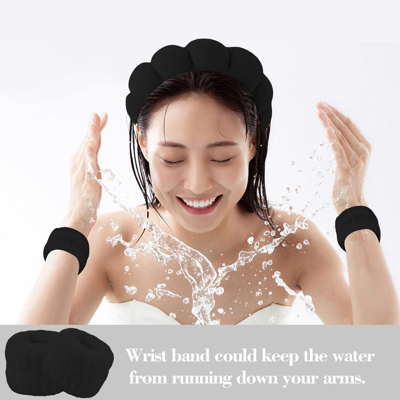 - 【Strong Water Absorbent】: The spa headband helps prevent hair from falling in front of your face and provide a barrier to keep your hair dry while washing face, Our towel wristbands prevent liquids from spreading down your arms, giving you snug enjoyment.