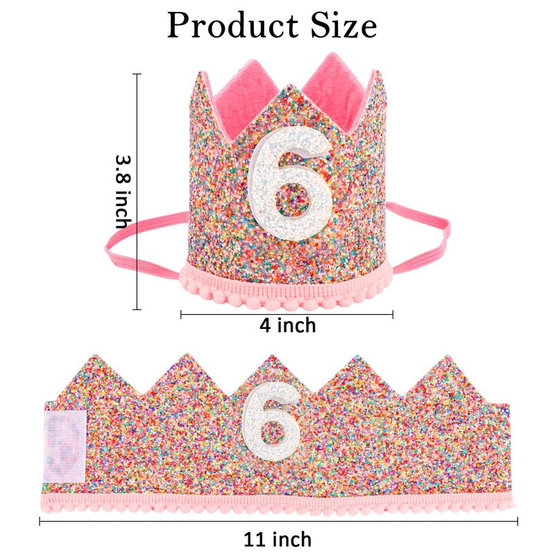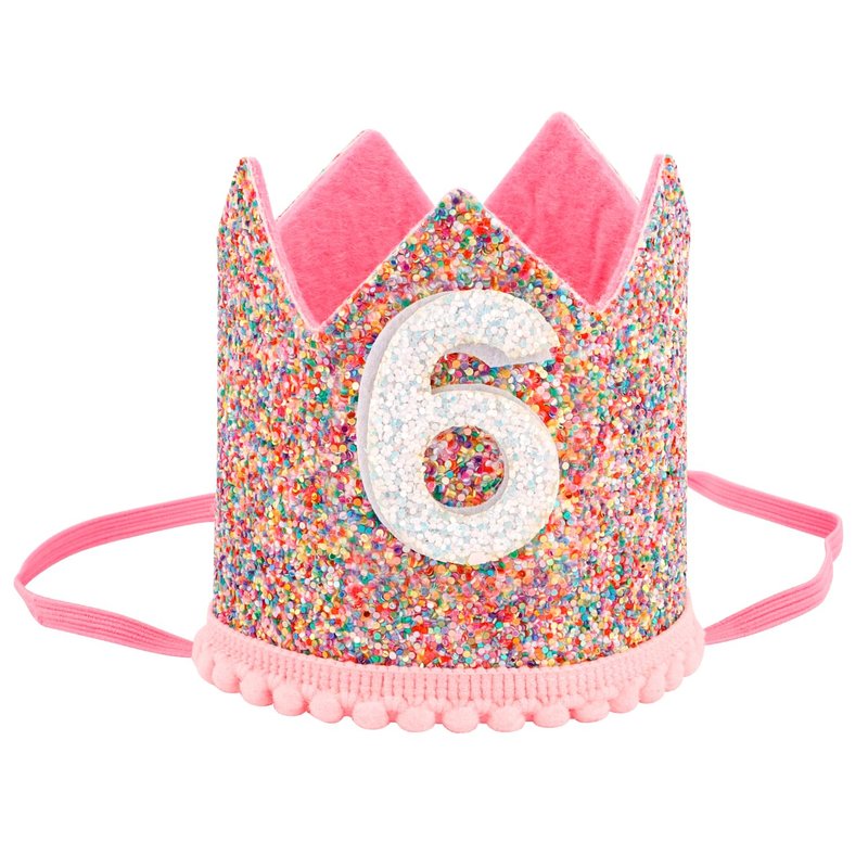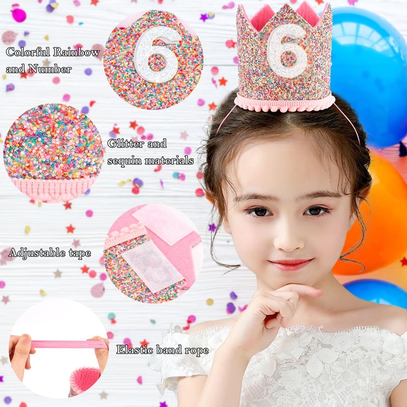 SuPoo 6th Birthday Decorations for Girl Sprinkle 6th Birthday Hat Headband Glitter Birthday Crown for Girls Princess Tiara with Elastic Band 6 Year Old Happy Birthday Party Cap Decorations Supplies