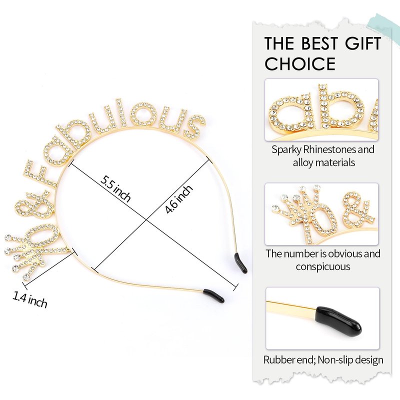 SuPoo 70th Birthday Decorations for Women 70th Birthday Headband Crown Gold 70th Birthday Gifts for Her 70 & Fabulous Party Decorations Happy Birthday Tiara Hair Accessories
