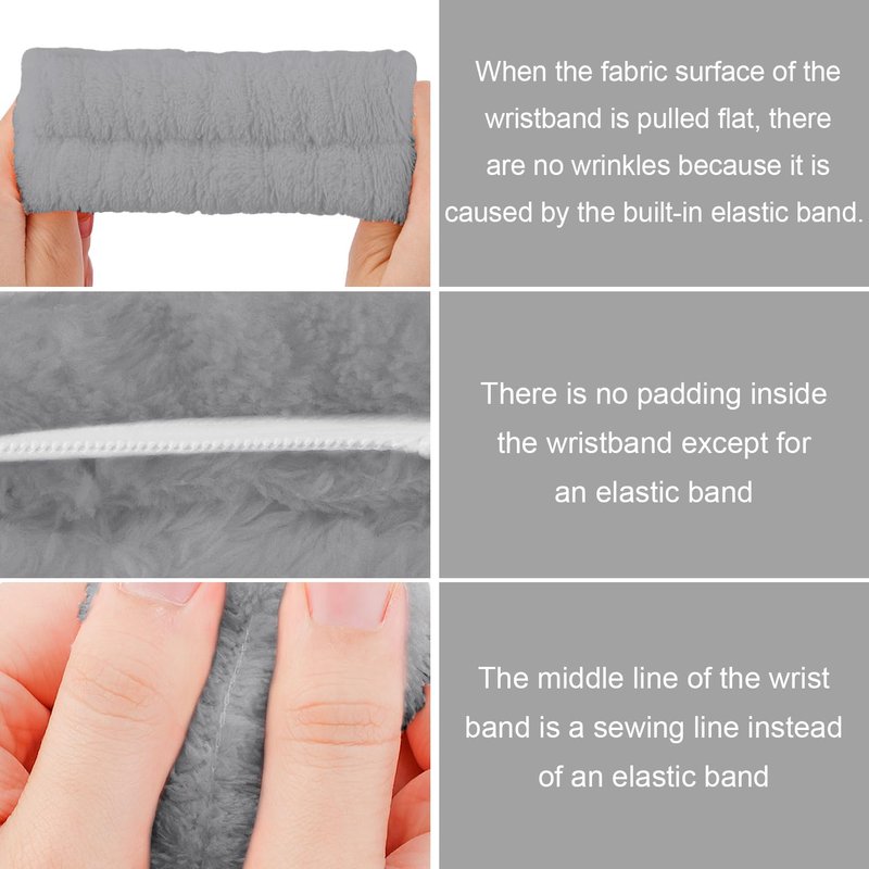 - 1. When the fabric surface of the wristband is pulled flat, there are no wrinkles because it is caused by the built-in elastic band. 2. There is no padding inside the wristband except for an elastic band. 3.The middle line of the wrist band is a sewing line instead of an elastic band.