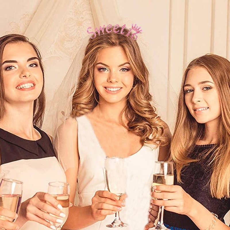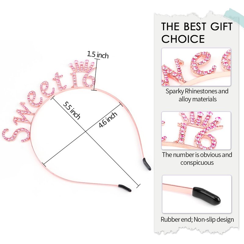 SuPoo Pink Sweet 16 Headband 16th Birthday Crown Birthday Decorations for Girls Shiny Rhinestone Birthday Tiara Princess Crown Sweet Sixteen Party Decorations Party Favors