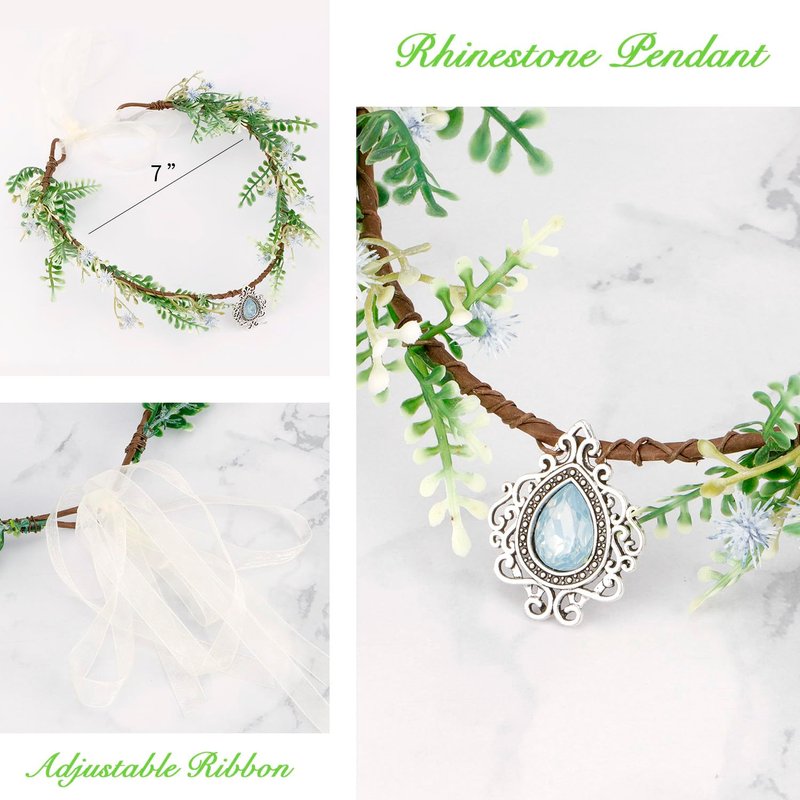 - [Pendant design]: With stunning rhinestones, this elf crown has a great mix of flowers and green leaves. It is very stunning when wearing it. It works well with any color of the dress.