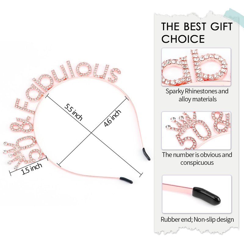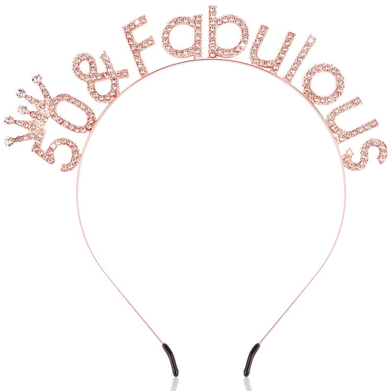 SuPoo Rose Gold 50th Birthday Crown 50th Birthday Decorations Women 50 & Fabulous Birthday Headband Tiara 50 Birthday Gifts for Her 50 Year Old Party Decorations Happy Birthday Hair Accessories
