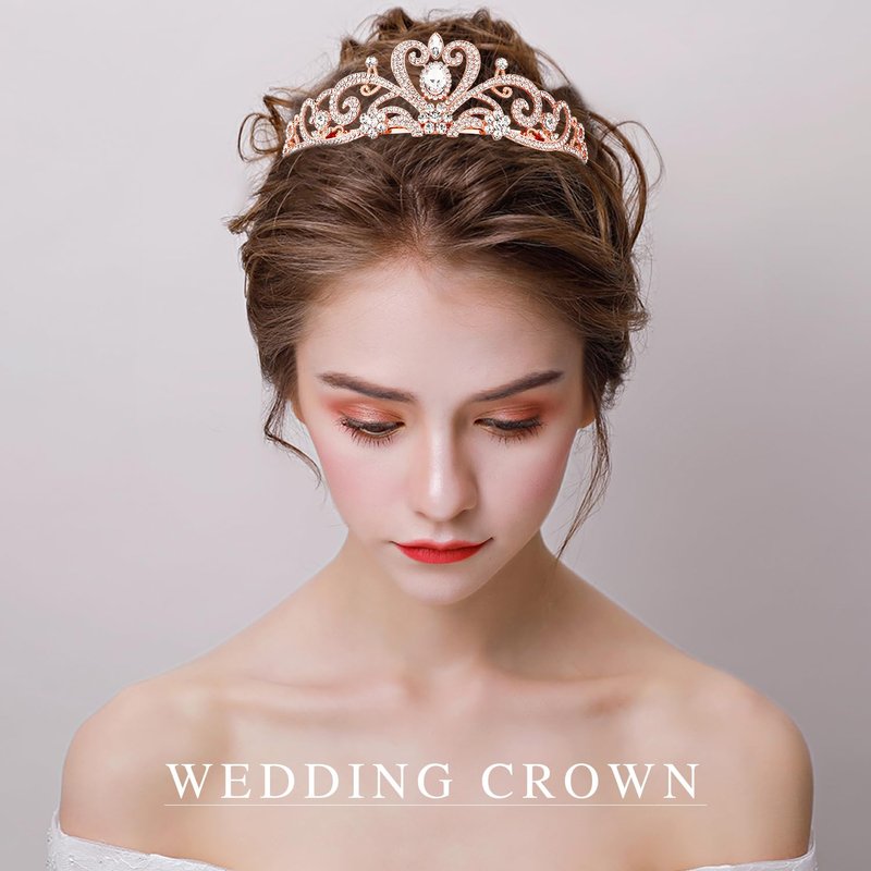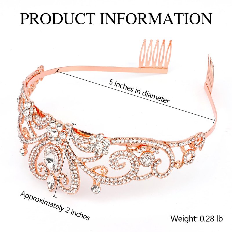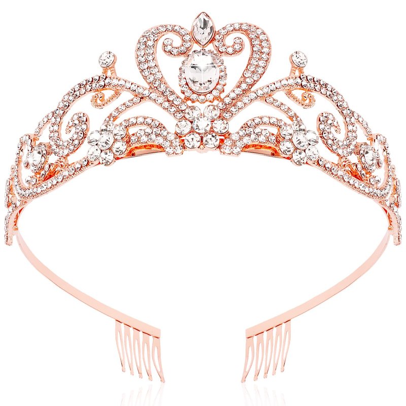 SuPoo Rose Gold Bridal Crown Wedding Tiaras and Crowns for Women Girls Queen Birthday Crown with Combs Crystal Princess Rhinestone Tiara Headband Prom Headpieces Cosplay Hair Accessories for Halloween