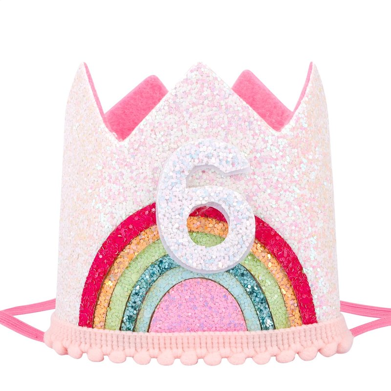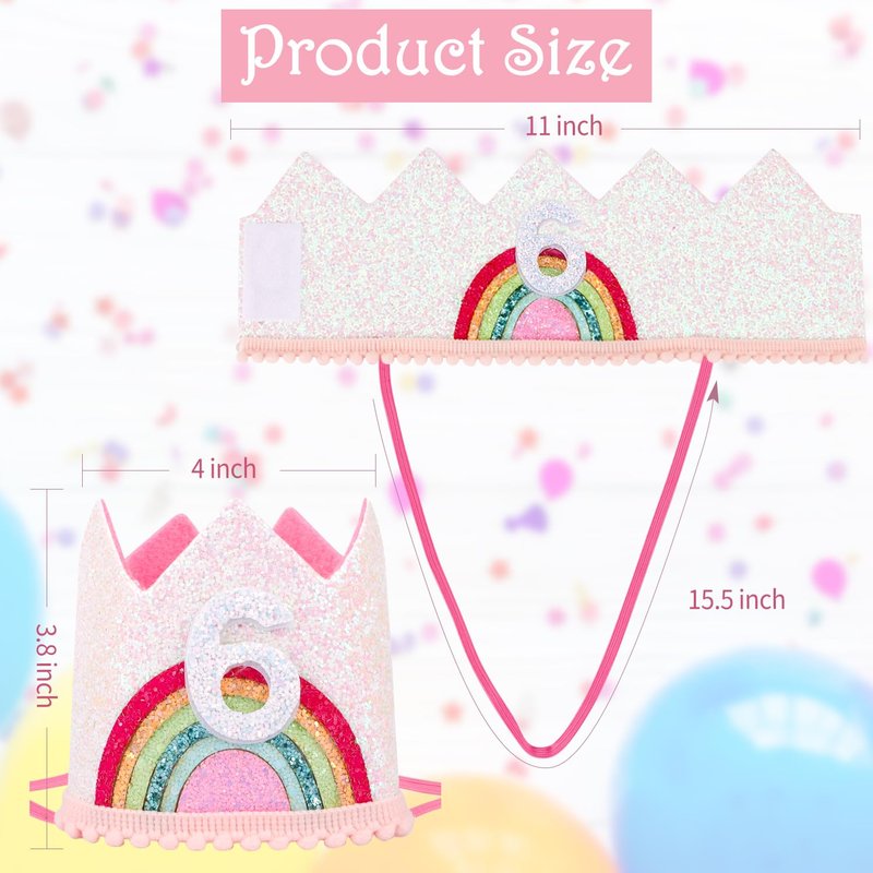 SuPoo Sequin 6th Birthday Hat Headband 6th Birthday Decorations for Girl Rainbow Birthday Crown for Girls Princess Tiara Elastic Hairbands 6 Year Old Happy Birthday Party Cap Decorations Accessories