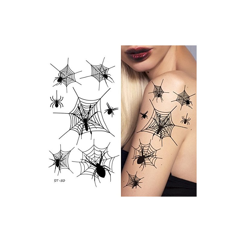 Supperb® Temporary Tattoos - Spiders and Spider Net Horror Cobweb Spider Halloween Tattoos (Spider Net)