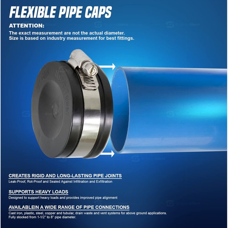 Supply Giant 3972 Flexible PVC Pipe Cap with Stainless Steel Clamps, 5.5" Inner Diameter for 5" Nominal Pipe, Black