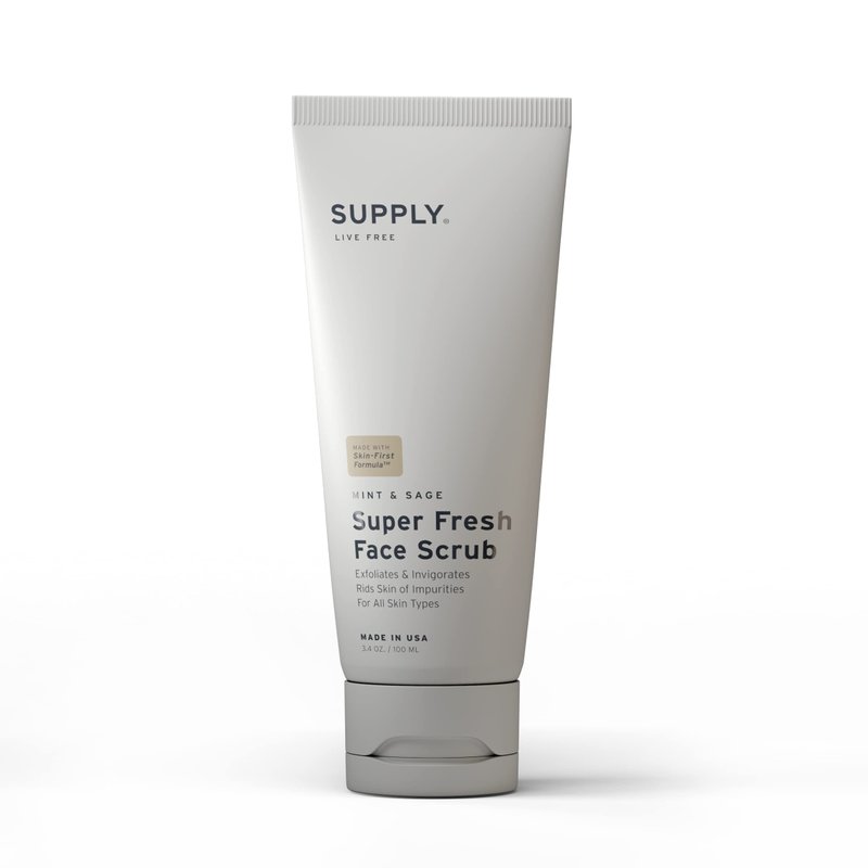 SUPPLY Super Fresh Face Scrub - Aloe, Tea Tree, Mint - Plant- Based Natural Face Wash for All - Cleanses and Revives Skin for Men and Women
