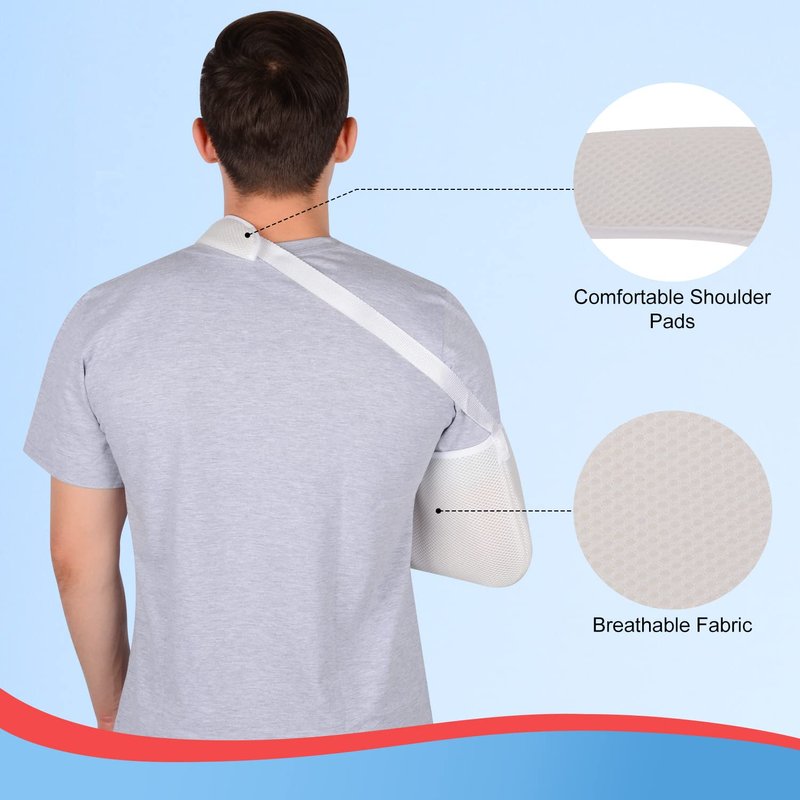 supregear Arm Sling, Adjustable Mesh Shoulder Immobilizer Arm Sling for Shower Breathable Medical Shoulder Elbow Support for Women Men, Fits Left/Right Arm, White