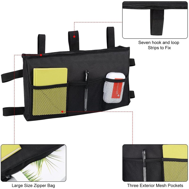 - Have multiple pockets to satisfy all your need. Three front exterior mesh pockets allow you to quick access frequently used items like reading glasses, drink, snacks and a remote control. Two roomy back pockets to store small items and the large zipper pocket is able to safely you’re your wallet, books and medical supplies