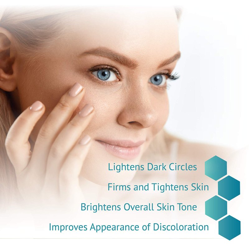 Formulated to be safe and effective for use at the delicate eye area, expected results are brightening, lightening, firming, tightening, & hydrating.
